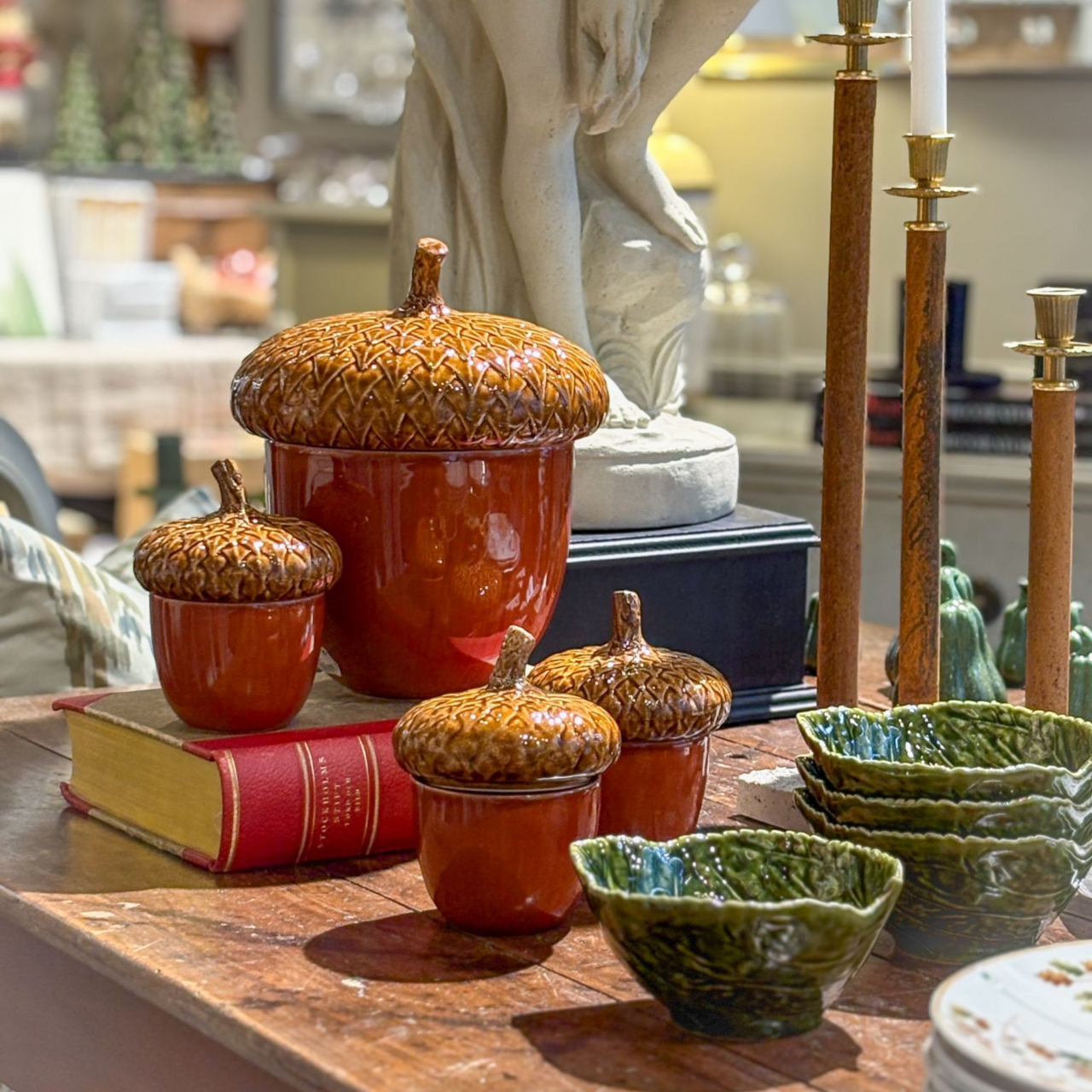 Upptäck en unik inredningsdetalj med Large Acorn Box – en större ask med lock formgiven som ett ekollon, från Bordallo Pinheiro. Med sin lekfulla naturinspirerade form och högkvalitativa keramik finish blir den både funktionell och dekorativ.