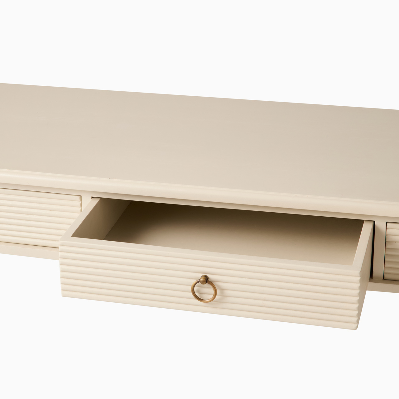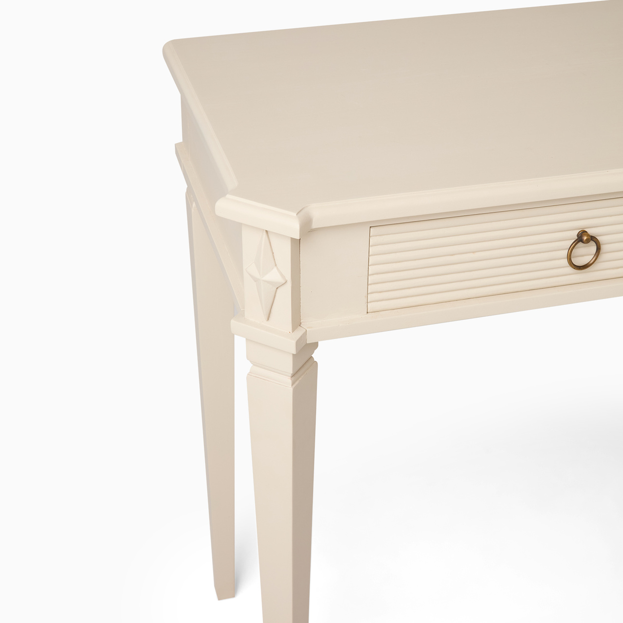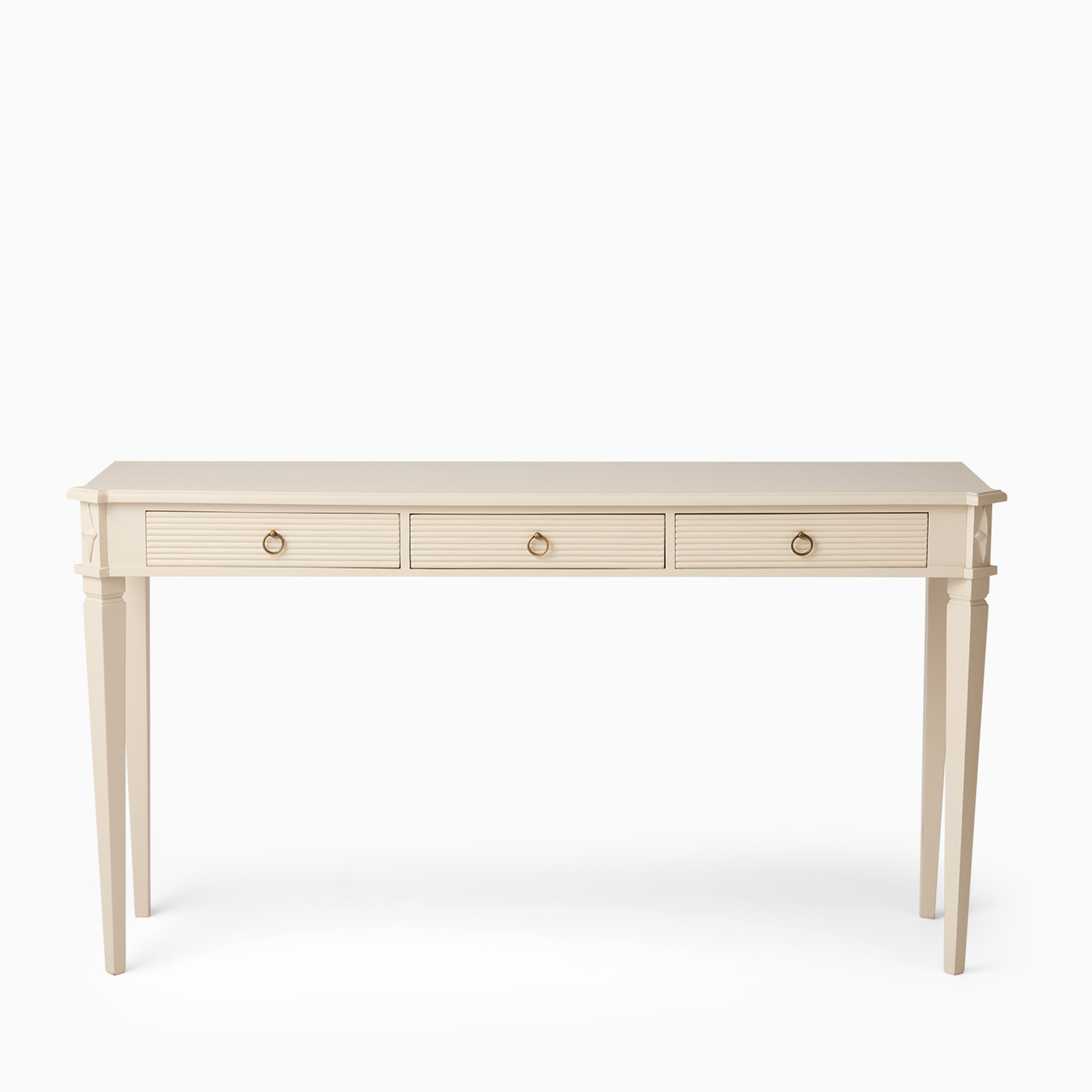 Ett stilrent avlastningsbord i elegant antikgrå finish, perfekt för dig som söker både funktion och klassisk formgivning. Bordet har tre praktiska lådor som erbjuder smidig och diskret förvaring – idealiskt för hallen, vardagsrummet eller sovrummet.