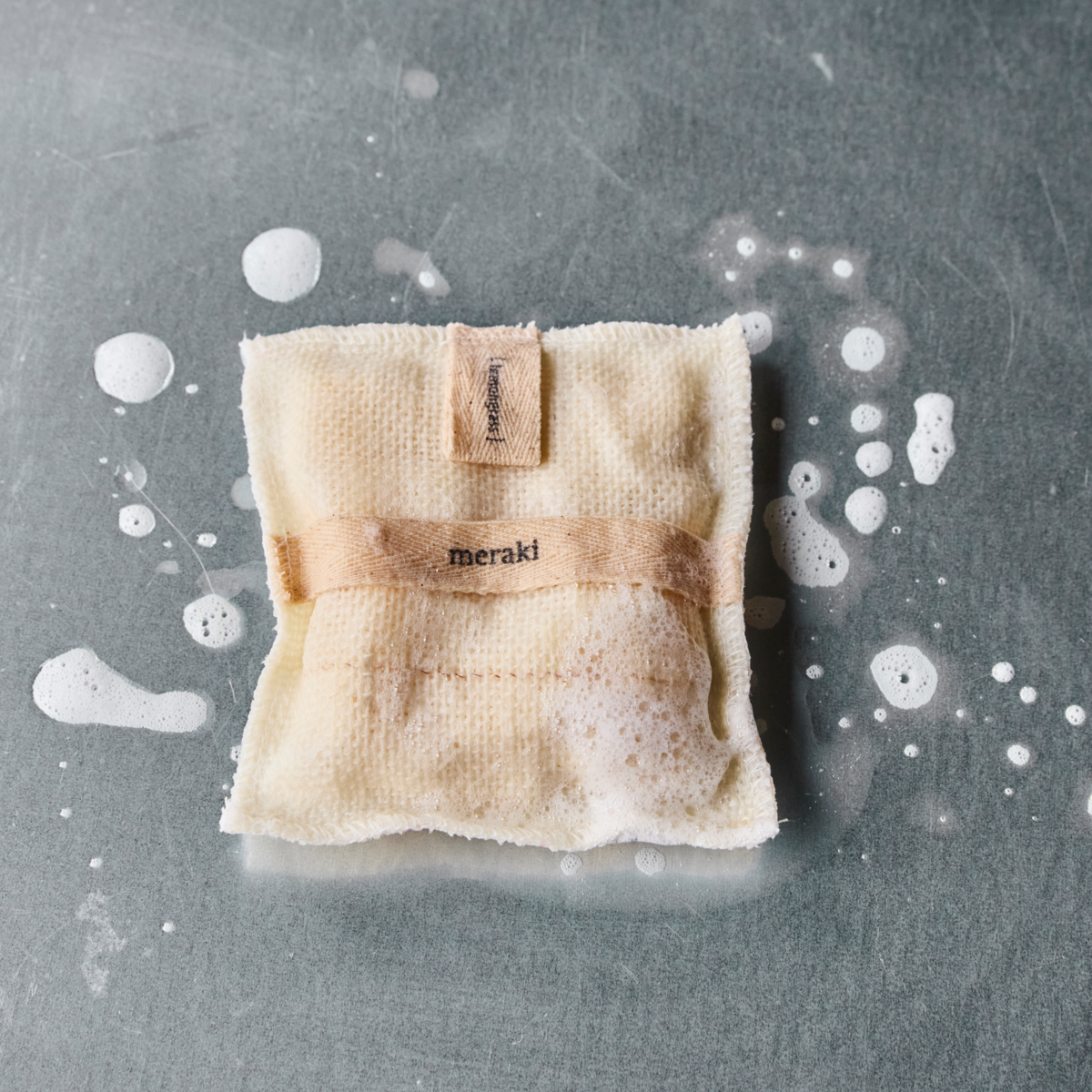 Exfolierande badvante med tvål och en uppfriskande doft av citrongräs.