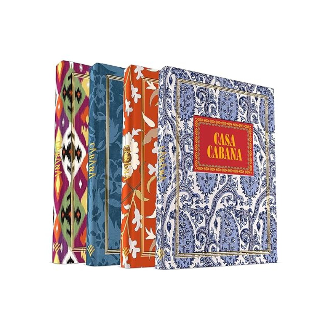 Varje exemplar är inbundet i ett av fyra exklusiva Cabana-tyg, framtagna i samarbete med Schumacher: Sasha Diamond Ikat, Daria Paisley, Floral Sisal eller Saz Paisley.