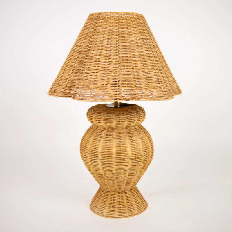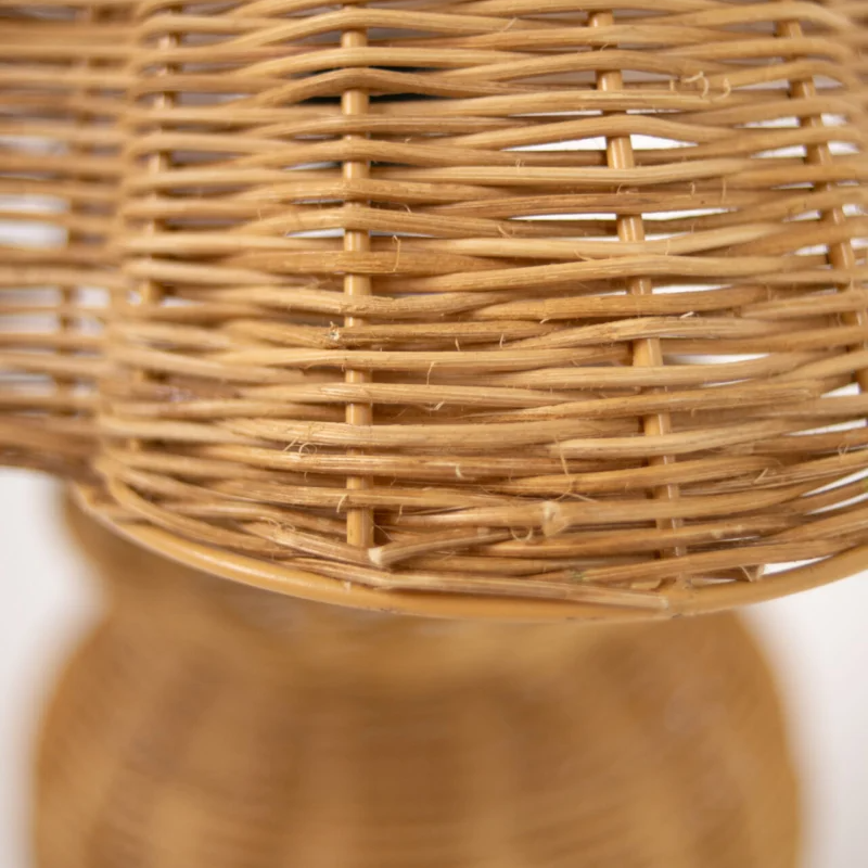 Skapa en varm och inbjudande atmosfär i ditt hem med Bani bordslampa, en romantisk och stilfull lampa tillverkad i naturlig rotting. Den vackra rottingflätningen sprider ett mjukt, behagligt ljus som gör lampan perfekt för allt från vardagsrum och sovrum till hall och läshörna.