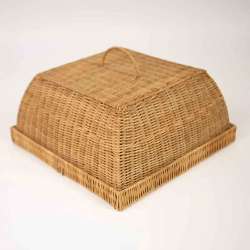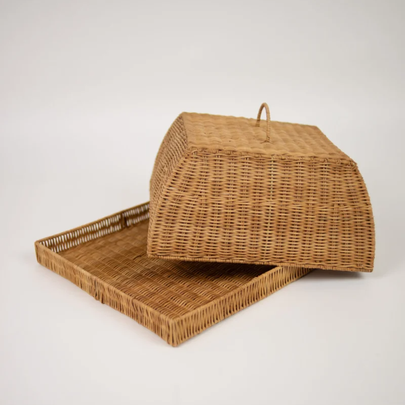 Taylor bricka med kupa – elegant serveringsbricka i rotting med praktisk täckkupa