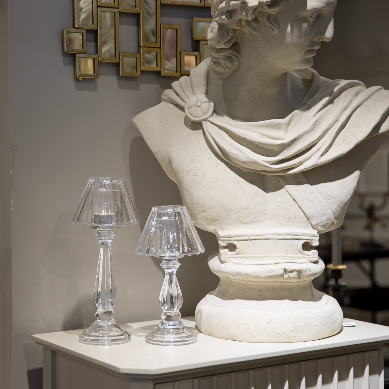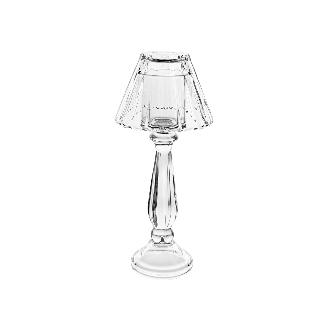 Elegant ljuslykta i klart glas med avtagbar skärm – 31 cm.