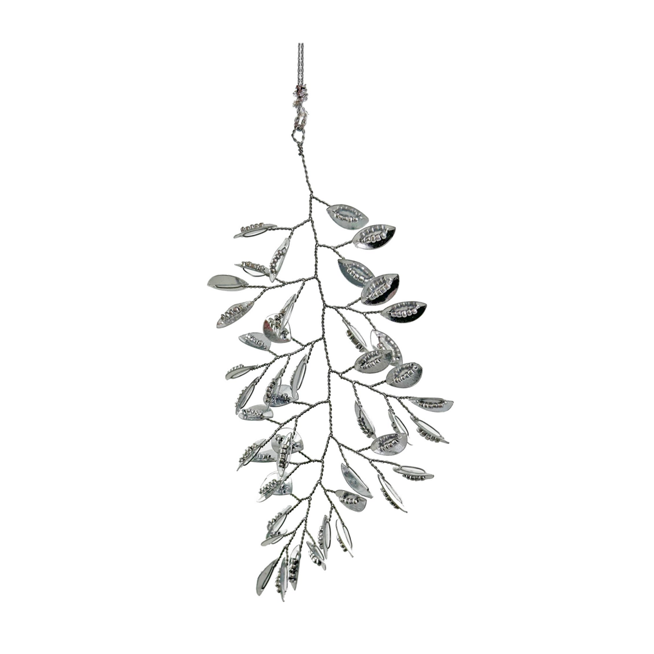 Silverfärgad grenformad juldekoration med blad och pärlor – 14 cm