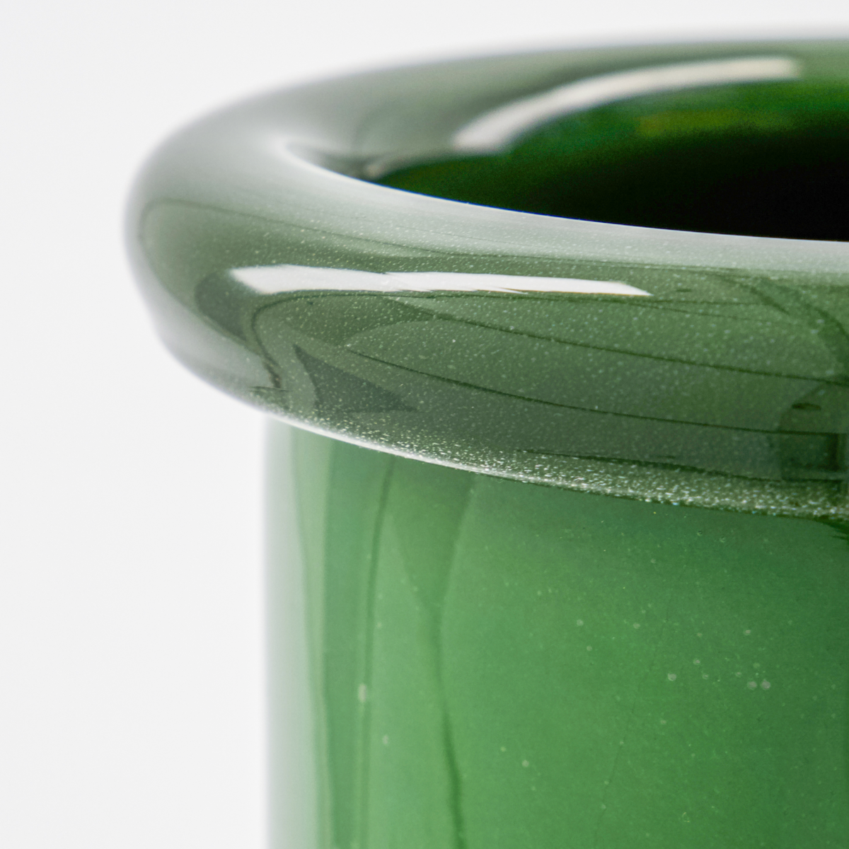 Vasen är tillverkad av kraftigt, handgjort glas i en djupgrön nyans. Den släta, rundade formen framhäver dina blomsterarrangemang på vackraste vis, medan den solida basen tillför vasen balans och stabilitet.