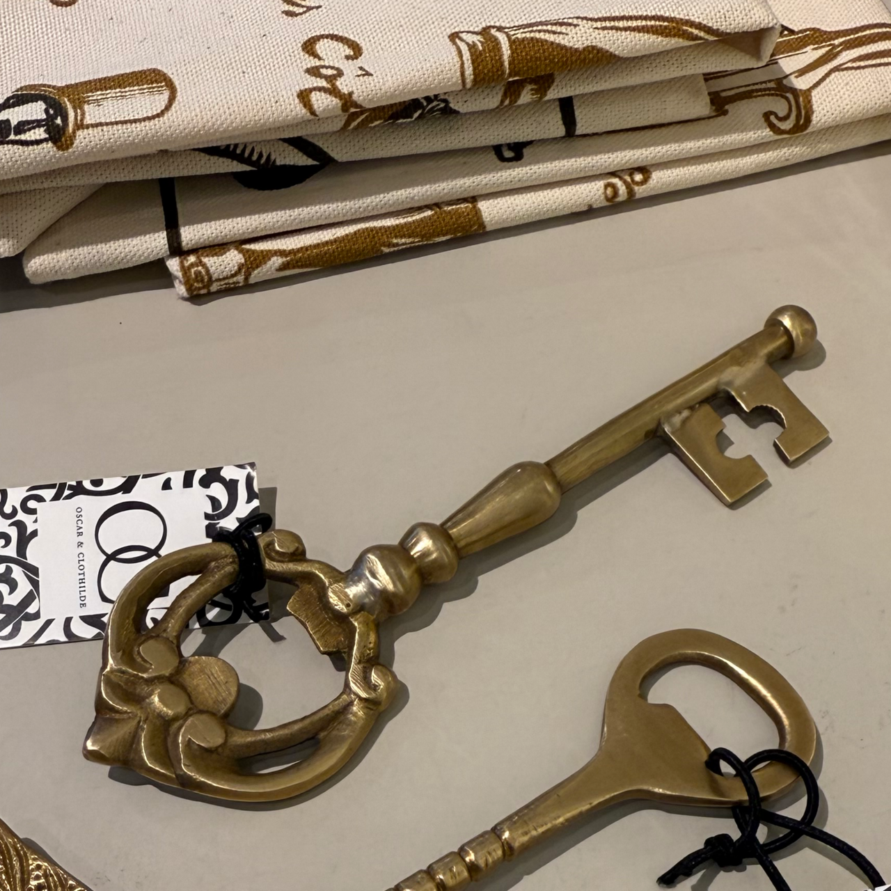 Dekorativ kapsylöppnare i form av en nyckel – tillverkad i mässing