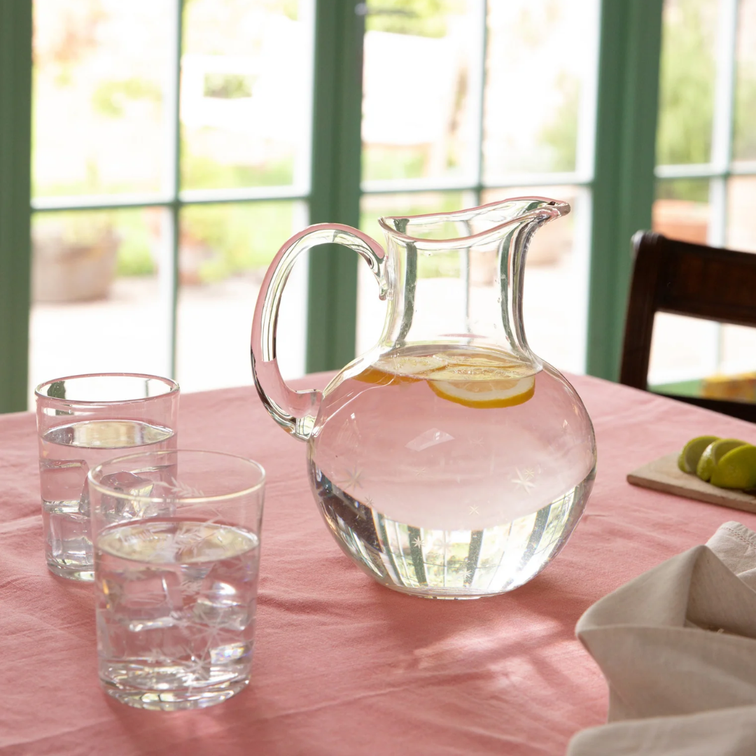 Lyft din servering med denna exklusiva kristallkanna med stjärndesign, en tidlös detalj som kombinerar klassisk brittisk design med modern funktionalitet. Den generösa storleken och det dekorativa stjärnmönstret gör kannan till ett perfekt val för både vardag och fest.