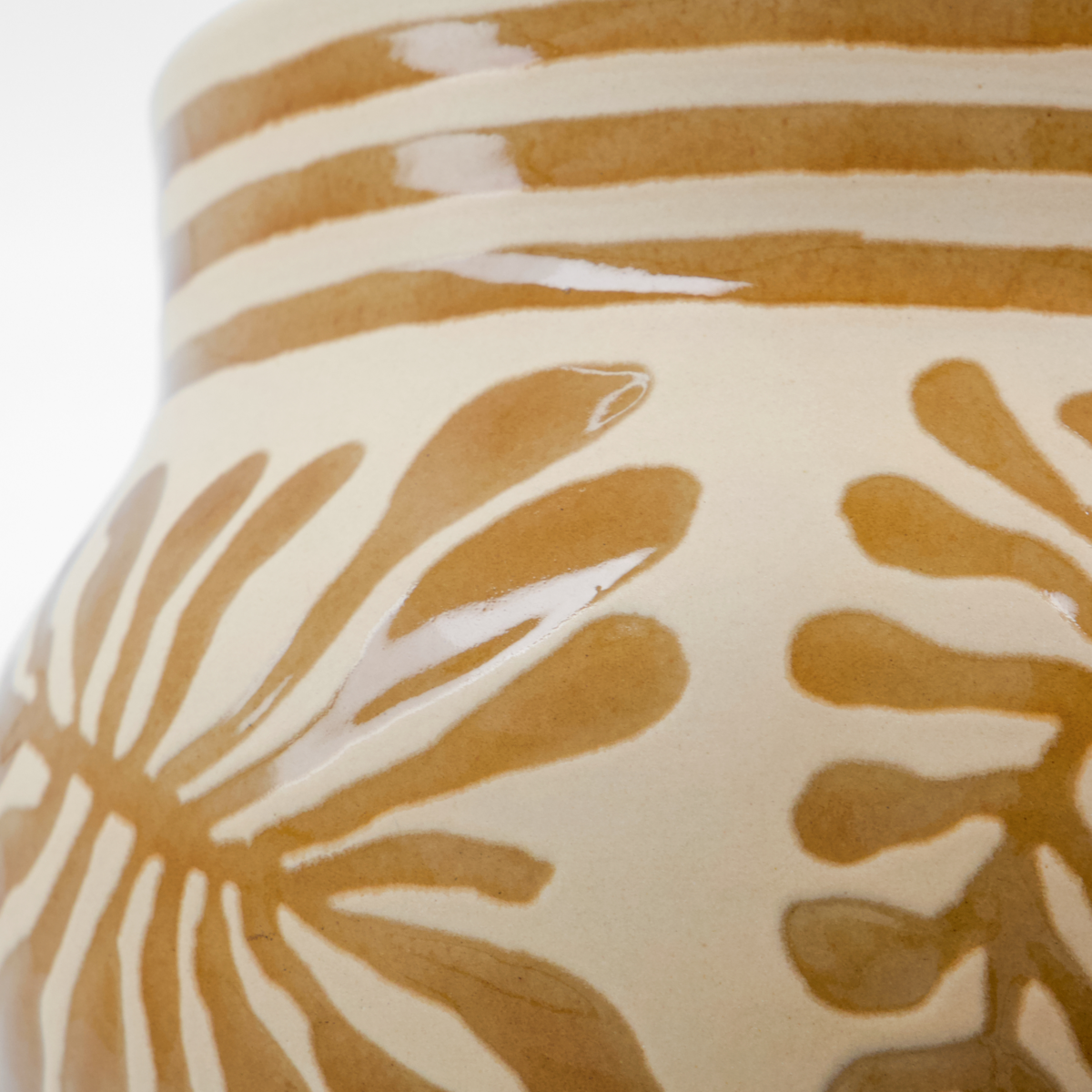 Framhäv dina växter med hjälp av denna kruka. Den är tillverkad av stengods och har en beige finish med ett diskret mönster. Krukan är skapad för att komplettera både gröna växter och blommor i full blom.