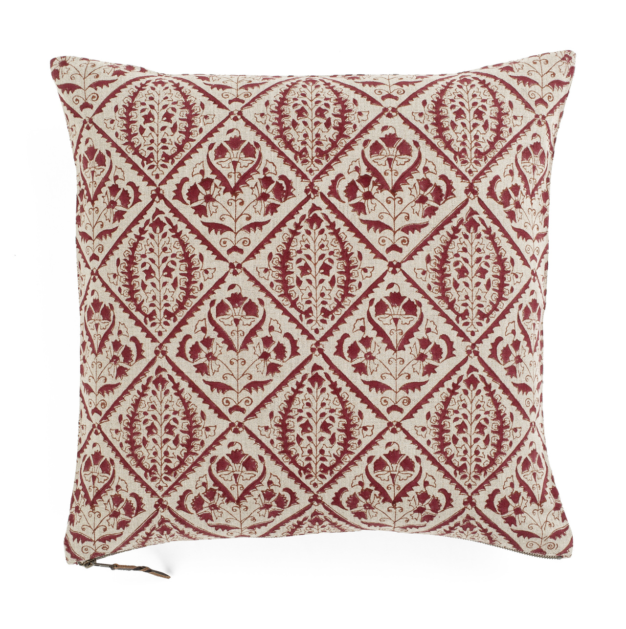 Kuddfodral Jaipur Röd 50x50 cm från Chamois Kuddfodral Jaipur Röd är tillverkat i 100 % linne och prytt med ett elegant mönster som tryckts för hand med traditionell blocktrycksteknik.