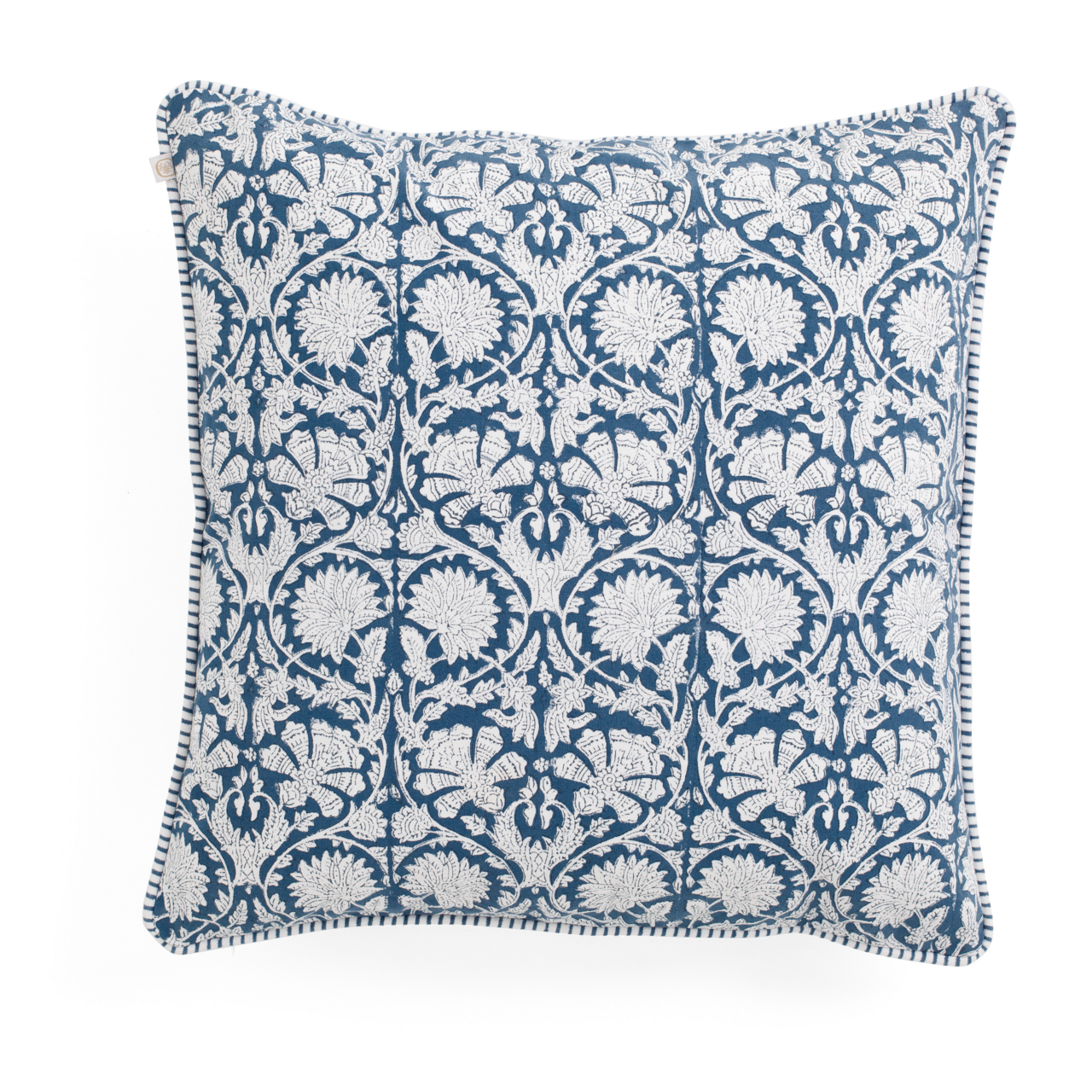 Ge ditt hem en tidlös och unik touch med vår handtryckta kudde i mjukt naturfärgat linne. Varje kudde är handblocktryckt, vilket gör varje exemplar helt unikt – ingen är den andra lik.