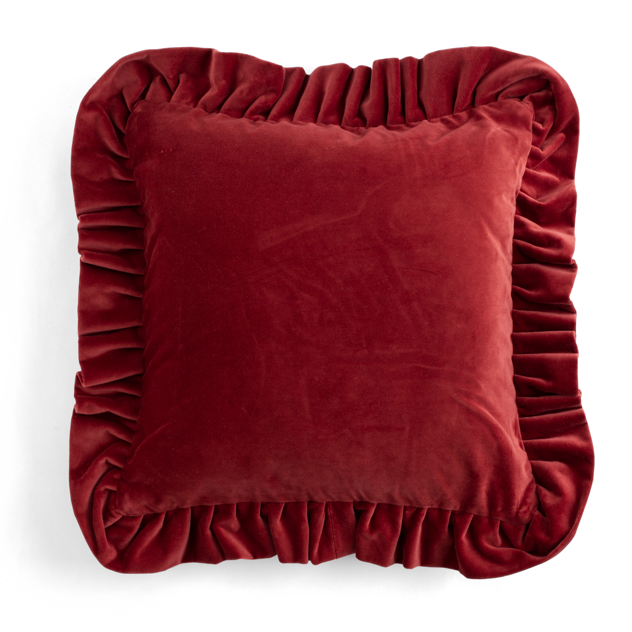Ge ditt hem en varm och inbjudande känsla inför julen med denna exklusiva sammetskudde i djup röd nyans. Kuddfodralet är tillverkat av mjuk bomullssammet av högsta kvalitet och pryds av en dekorativ volang som ger en klassisk och stilfull look. Perfekt att kombinera med Chamois jultextilier för en harmonisk och festlig helhet i vardagsrum eller sovrum.Observera att kuddfodralet säljs utan innerkudde – välj en passande innerkudde separat för att fullända stilen och komforten. Vi rekomenderar 50x50 innerkuddar vilket ger ett fylligare utseende för kudden.