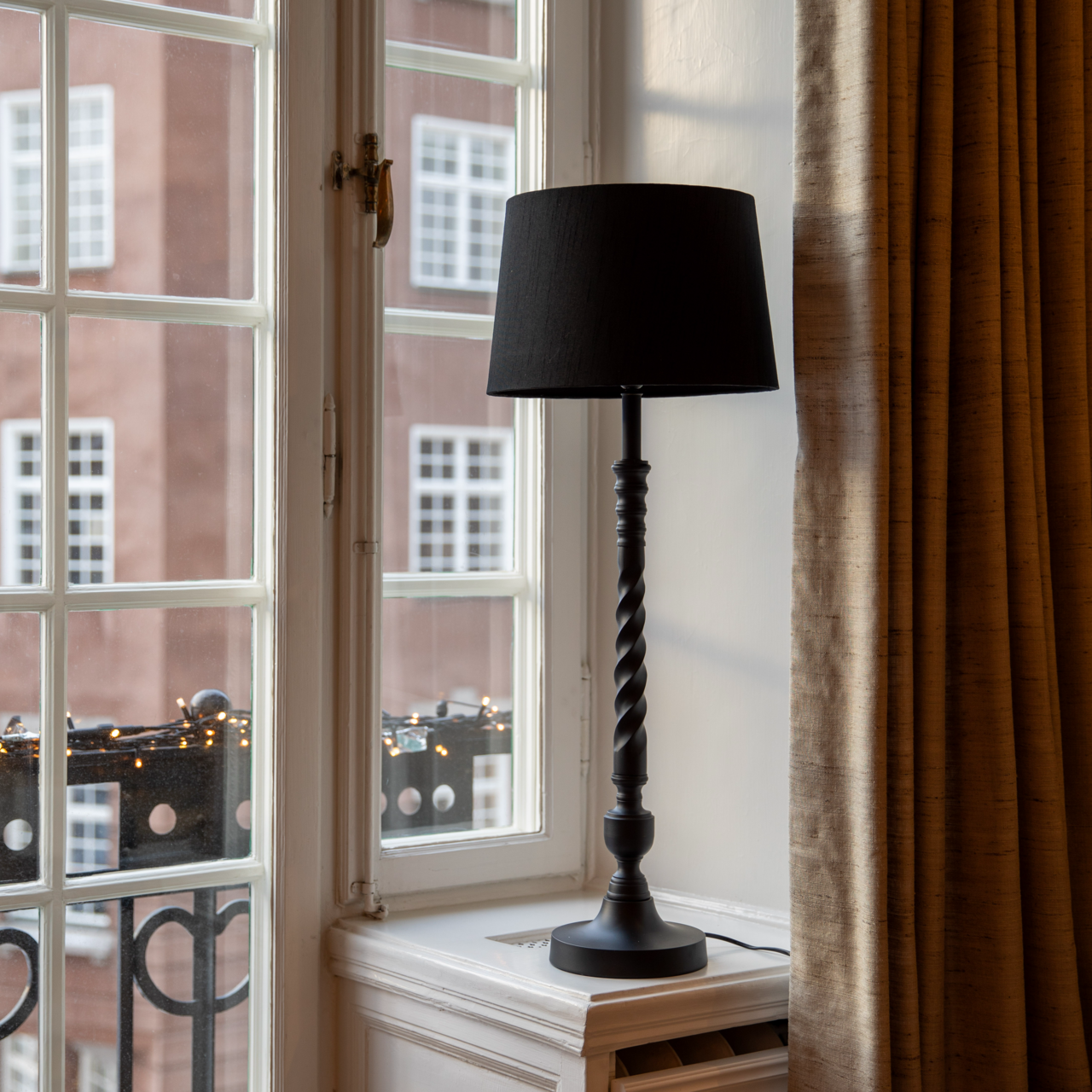 Vackert tvinnad lampfot i mattsvart metall. Med sin klassiska design och rejäla höjd passar den alla inredningsstilar.