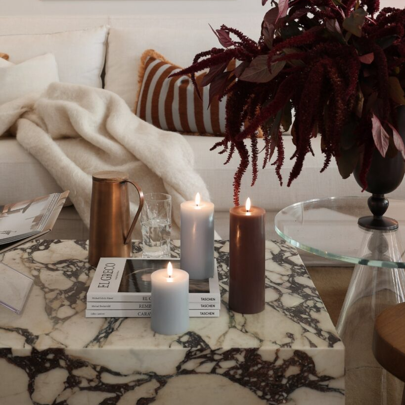 Skapa en varm och inbjudande atmosfär med LED‑pelarljuset från Ester & Erik på 15 cm.