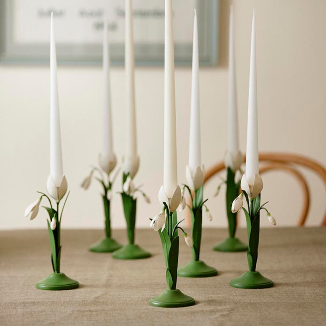 Elegant ljusstake med snödroppsdesign – handmålad med utsökta detaljer