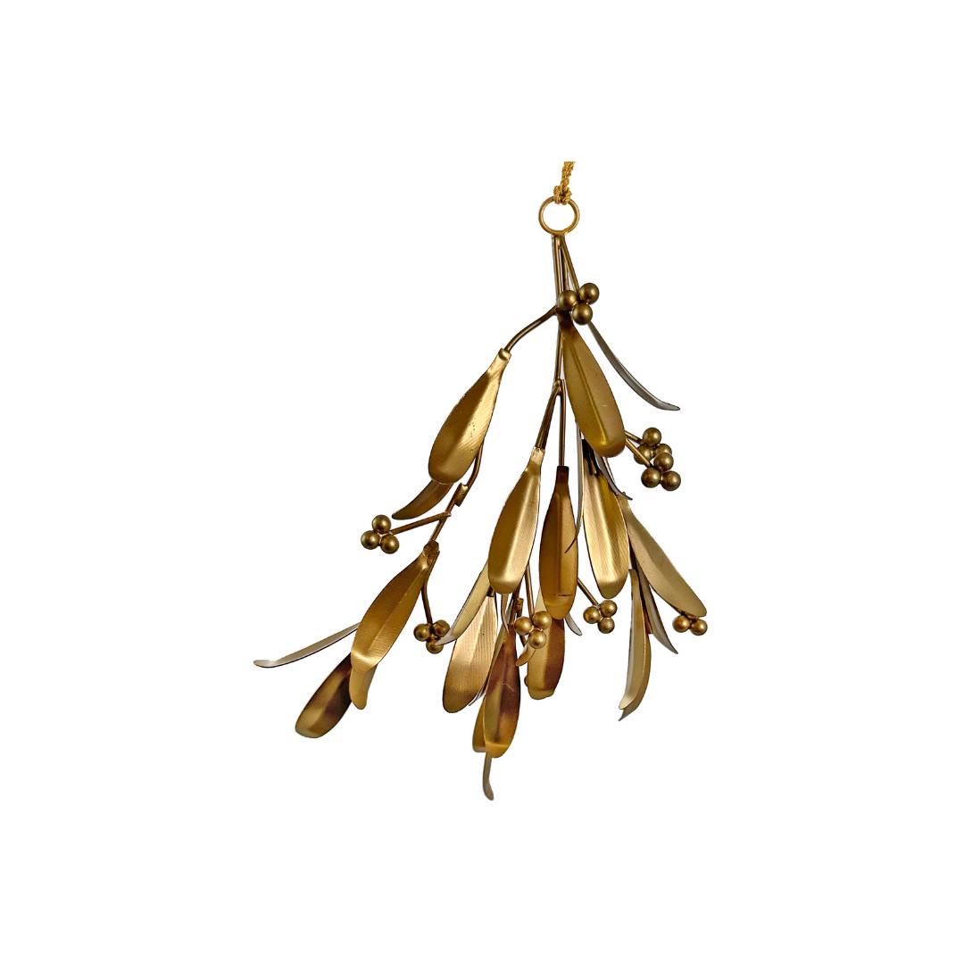 Detta mistel‑ornament i metall (21 cm) kombinerar klassisk julestetik med hållbar design. Den åldrade guldiga ytan ger en antik och lyxig känsla som passar både moderna och traditionella inredningar. Misteln är inte bara en symbol för julefrid och gemenskap utan fungerar även som en dekorativ accent som förhöjer atmosfären i rummet.