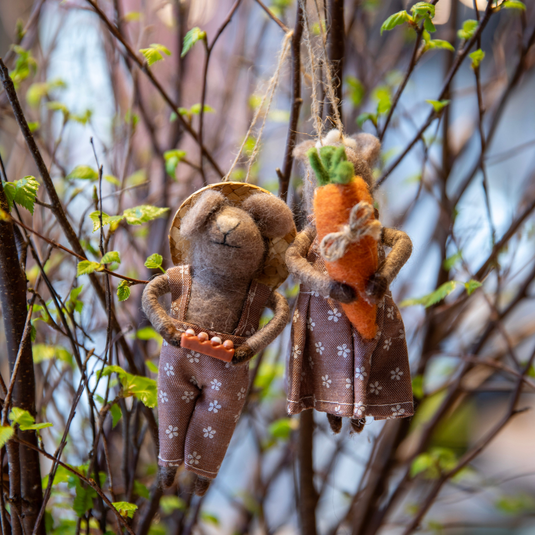 Påskens finaste pynt är här! Dessa charmiga, handgjorda påskmöss är perfekta för dig som vill skapa en lekfull och personlig påskdekoration. Mössen säljs i par och är enkla att kombinera med varandra för en unik och kreativ påskstämning.