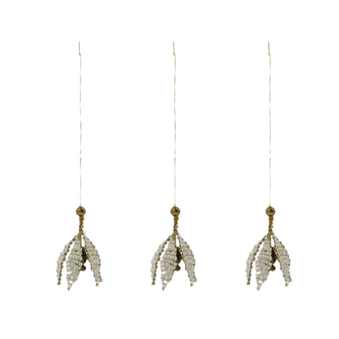 Ge ditt hem en elegant och vårinspirerad touch med House Doctor klocka påskdekoration 3-pack i off-white. Varje handgjord, klockformad dekoration är vackert täckt med pärldekor och subtila gyllene detaljer, vilket skapar ett sofistikerat uttryck som passar både ensamstående som i grupp. Perfekt för att lyfta fram påskbordet, fönsterbrädan eller vårens inredning med en stilren och lyxig känsla.