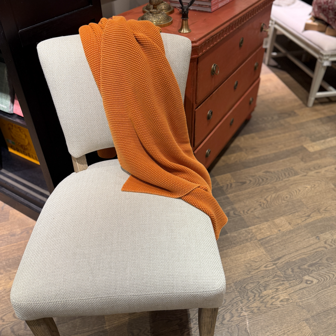 Underbar bomullspläd av hög kvalitet i en vacker och mustig orange ton från Oscar & Clothilde.