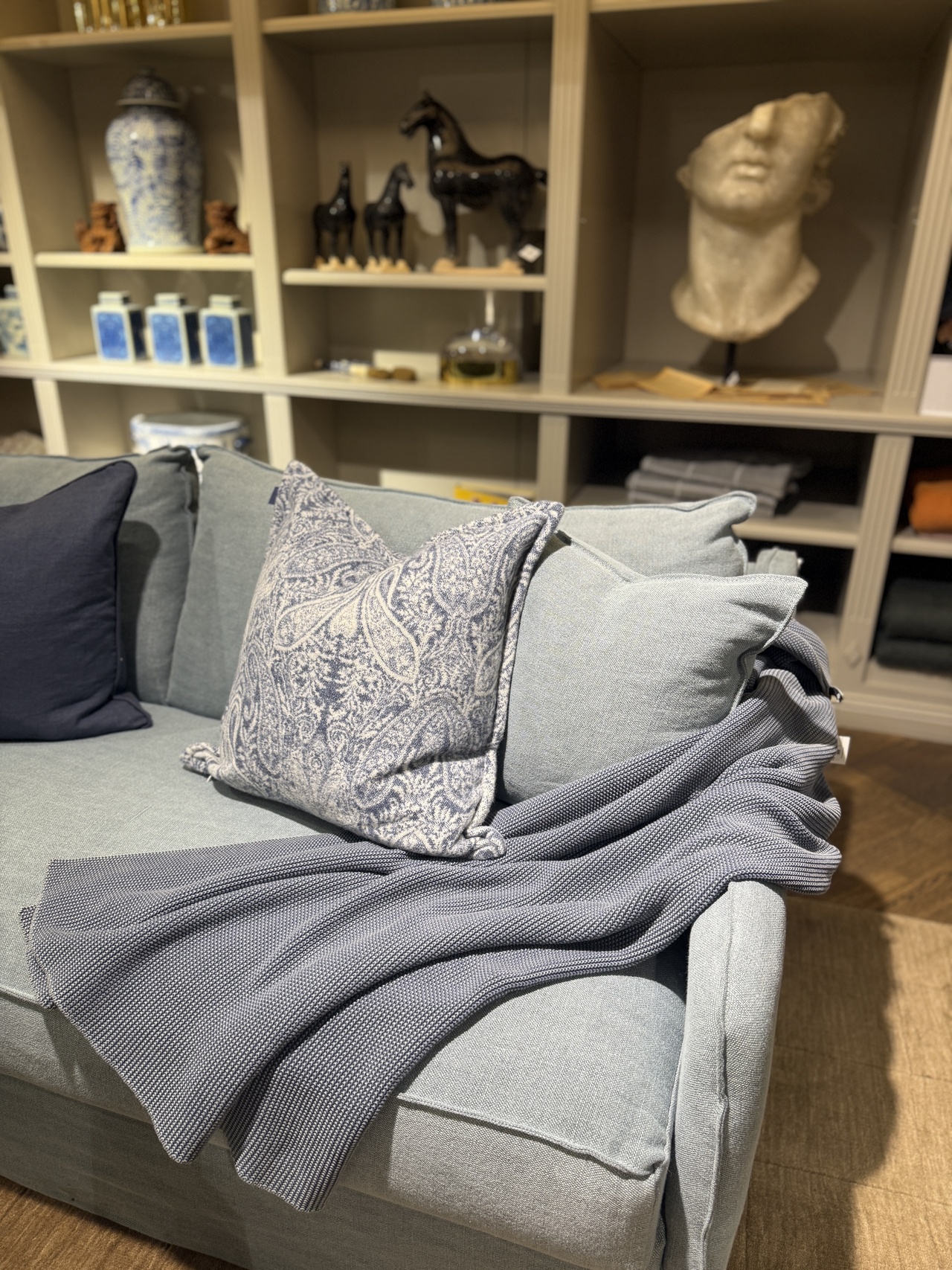 Värmande pläd i underbar mjuk bomull som garanterat blir sommarens favorit. Pläden har en vacker blå färg och passar lika bra att inomhus i soffan som på uteplatsen.