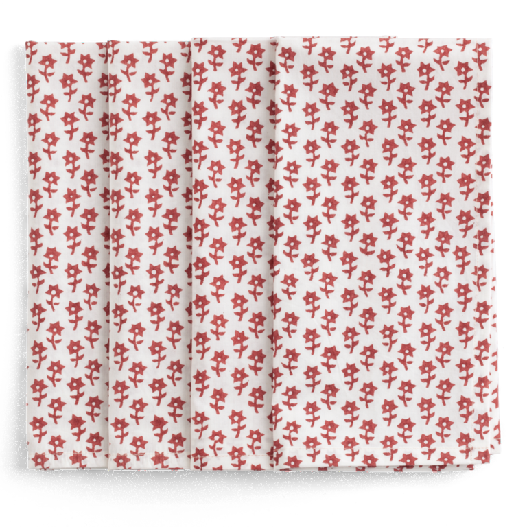 Lyft varje dukning med detta exklusiva 4-pack tygservetter från Chamois, handtryckta med traditionell blocktrycksteknik.