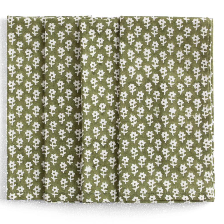 Lyft varje dukning med detta exklusiva 4-pack tygservetter från Chamois, handtryckta med traditionell blocktrycksteknik.