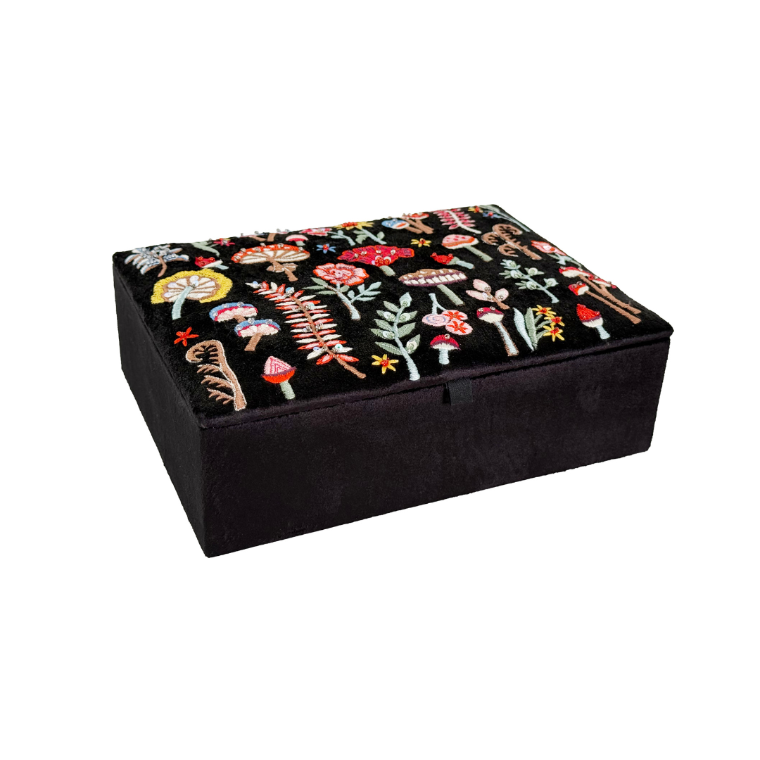 Smyckesask i svart sammet svampdekoration M 20 x 15 x 7 cm