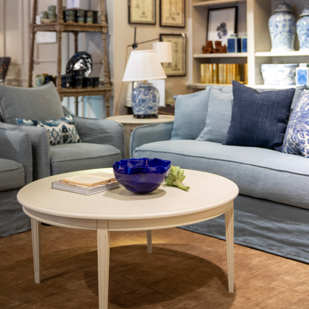 Soffbordet Clothilde i antikgrå är penselmålat för hand i tre lager med vattenbaserad färg. Ett tunt lager skyddande vax förseglar ytan och framhäver den vackra, antika finishen.