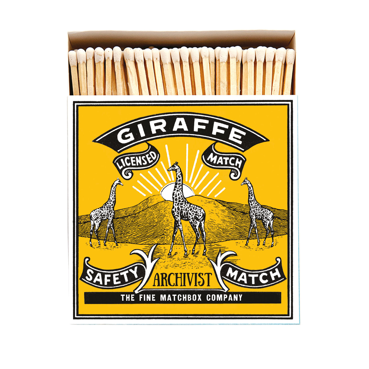 Kvadratisk tändsticksask i vacker design. Denna ask har ett charmigt motiv av giraffer.