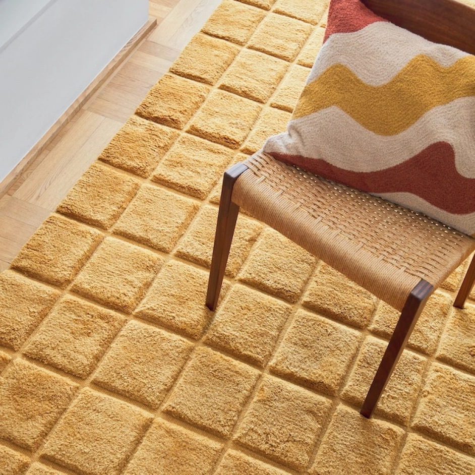 Loha Handvävd Spårbar Ullmatta Masala gul.