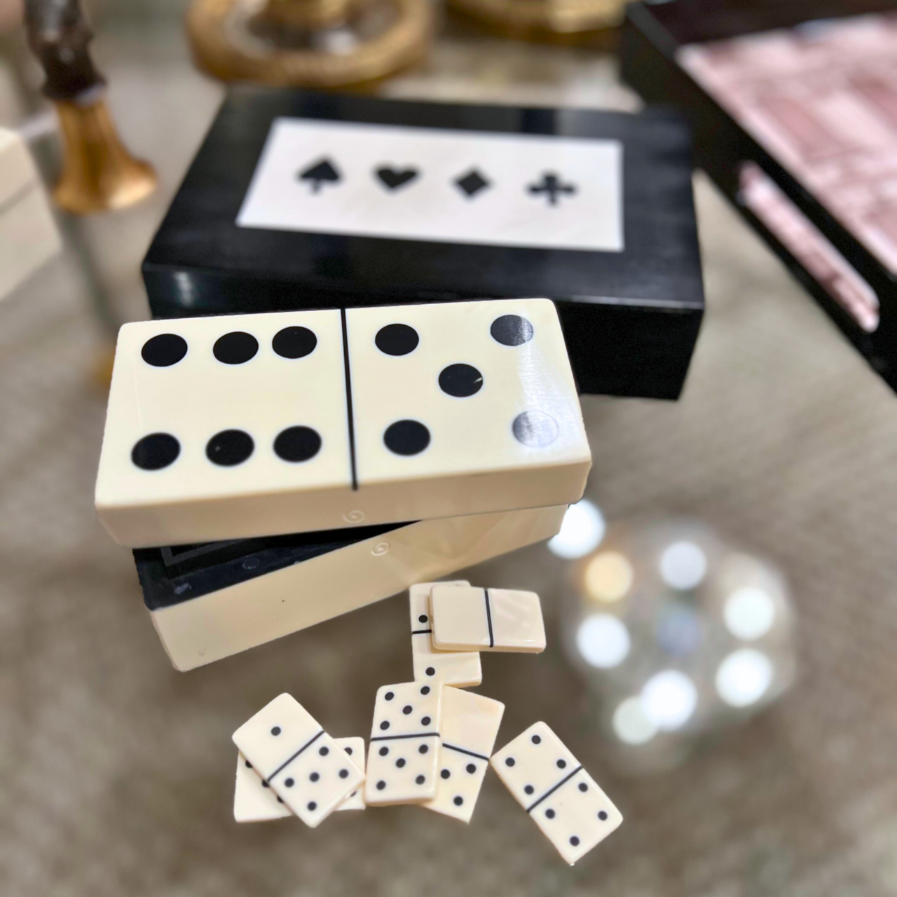 Vit dominolåda – klassiskt sällskapsspel med stil